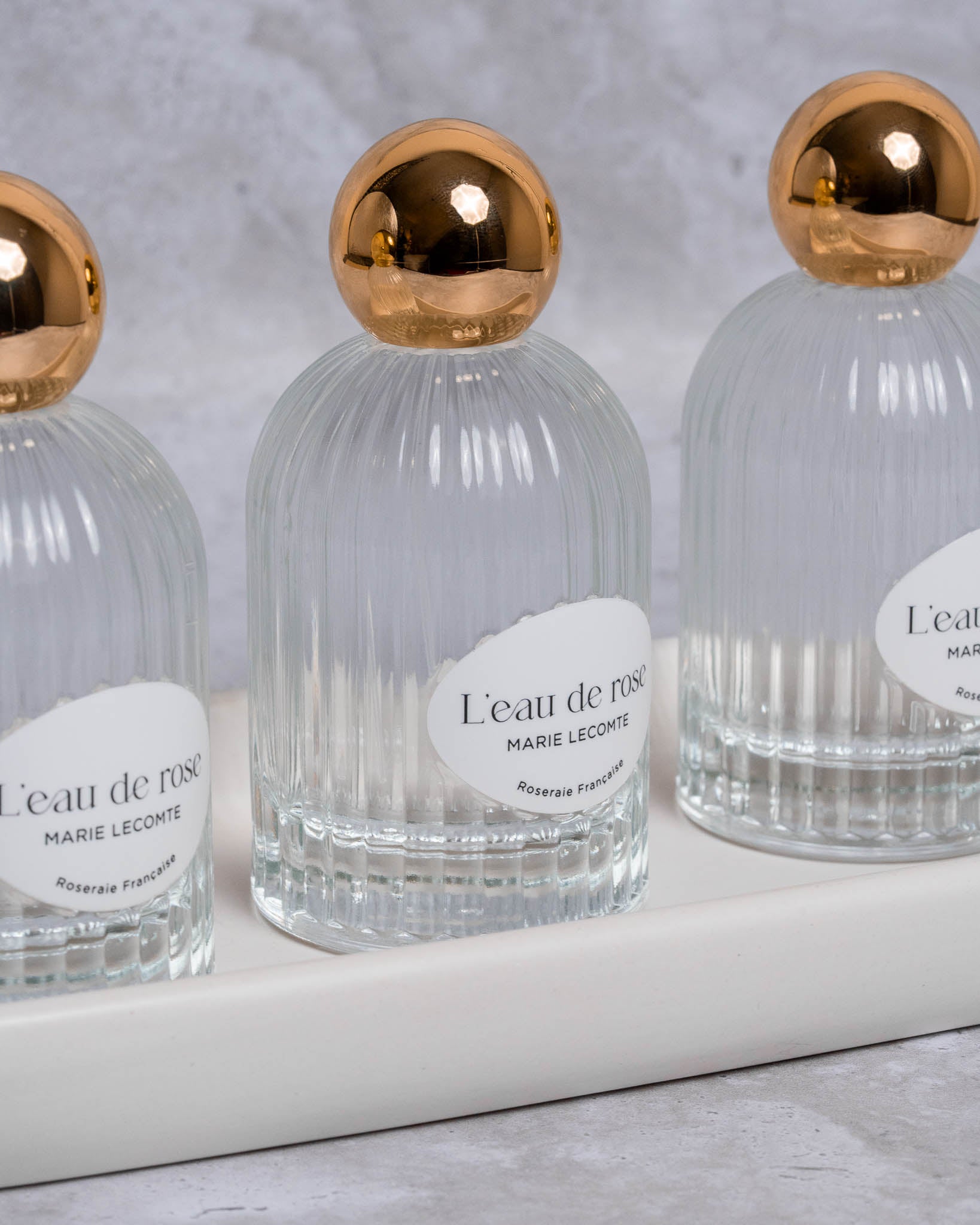 Assemblées pour créer notre eau de rose française.